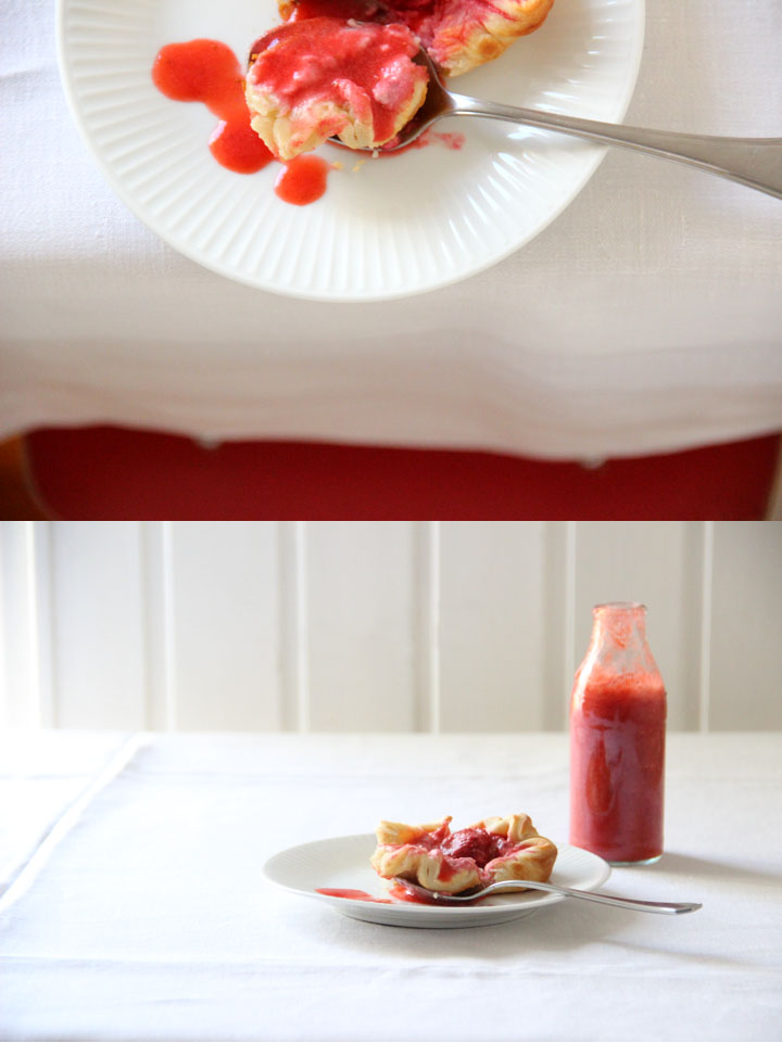 {sugar in the morning} – feist grinsend mit den Füßen wippend hätte dieses Shirt meinem Erdbeermund heute sehr geschmeichelt. Heimische Erdbeeren schmiegen sich sanft in eine Crème aus zitronigem Quark und Marzipan umhüllt von einem Teigrest [aus dem Gefrierfach] – dazu ein duftiges Erdbeer-Sirup Püree. So geht’s. ♥