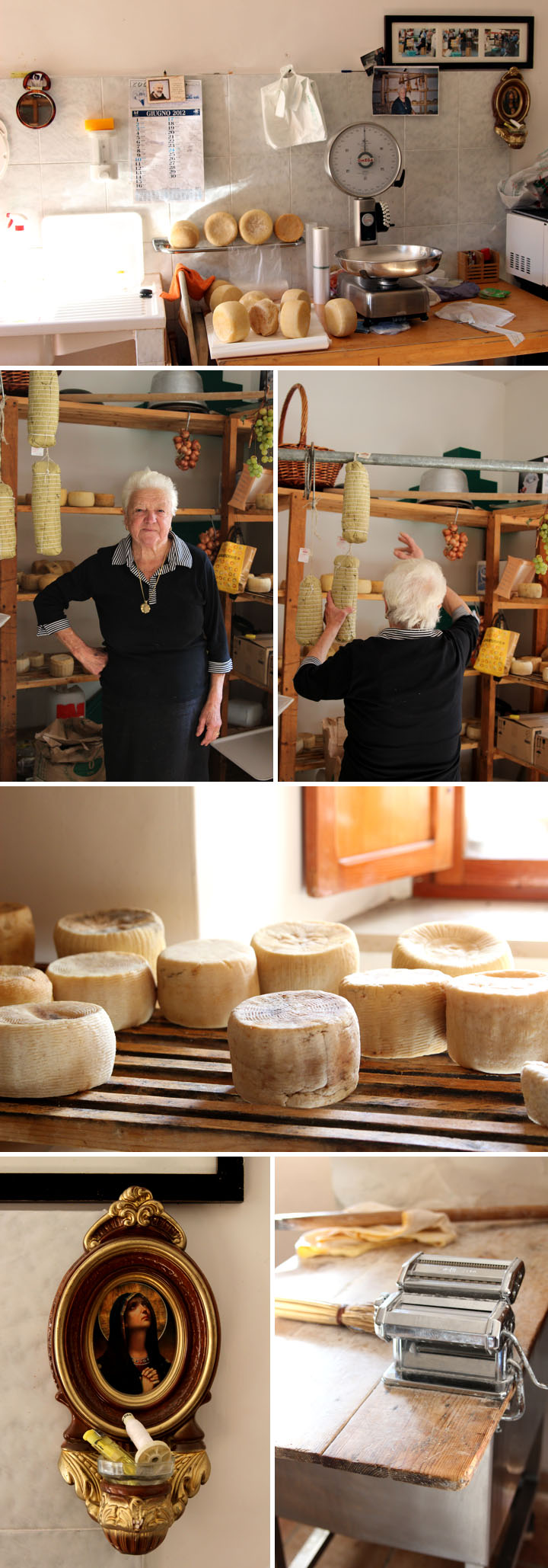 Ninetta und Antonella – Mutter und Tochter unsere Gastgeberinnen der zweiten Woche. Ein familiengeführtes Agriturismo im Majella Nationalpark. Hier ist alles nicht ganz so fein und glänzend wie in manch anderem italienischen Landstrich, aber ich habe mich schon lange nicht mehr so richtig und gut aufgehoben gefühlt. Eine großartige Stille scheint unwichtige Gedanken heraus zu filtern und nur die guten durchzulassen. Wir haben jeden Abend auf der Terrasse gesessen und dem Sonnenuntergang gelauscht, dabei klimperten die Töpfe in Antonellas Küche und ein fein würziger Käseduft kitzelte in der Nase. Tage fanden ihren Rhythmus mit Genuß und guten Gedanken, ein klein wenig davon im hier und jetzt reicht hoffentlich für viele erste Schritte. Euch einen bunten Herbstsonntag!