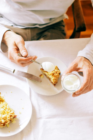 Rhabarber Kompott geschichtet zwischen cremigem Rührteig, getoppt mit Mandel Streusel, gebacken in Herzform – die ein wenig aus der Form ging. Macht nichts, Streusel Herzen schmecken auch unförmig. Beim Backen viel mir auf, dass ich gefühlte 100 Mal in den Ofen schauen muss. Beobachten wie sich der Teig in den ersten 10 Minuten beginnt vorsichtig nach oben zu strecken, das erste zarte Braun der Streusel, aufpassen das sie nicht zu schnell bräunen – schauen immer wieder – ein herrliches Vergnügen. In meiner nächsten Küche wünsche ich mir einen Ofen auf Augenhöhe für noch mehr spannendes Beobachten! Rhubarb Streusel Coffee Cake. Wishing an oven at eye level for even more baking fun. Wonderful midweek!