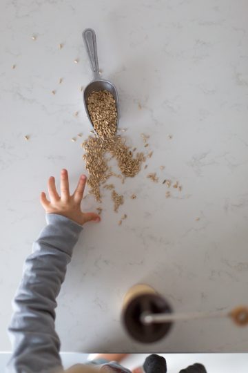 Müsli am Morgen, Kartoffeln und Gemüse am Mittag, Brot mit Käse am Abend, Eis und Kuchen am Nachmittag. Wer das Glück hat mit Kindern zu wachsen, lernt schnell dass diese Regeln gelassen auf den Kopf gestellt werden dürfen. Wir mahlen aber heute ganz getreu des ’normalen Früh-Mi-A Plan‘ unser Getreide für das Frühstück-Müsli und freuen uns über den unvergleichlichen Duft frisch gemahlenen Korns.