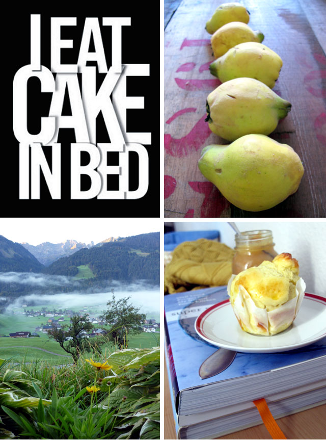 Das Beste am Tag – mein Morgen. Gedankenfundstücke reihen sich seid gestern wie an einer Perlenschnur aneinander, dank Nina und Katrin. Morgen oder Abendmensch hat Katrin mich gefragt und Nina schwärmte von Frühnebel. Eindeutig Morgen und frühnebelverzückt! Und da fing es an bei mir zu rattern. Schon immer bin ich vor allen aufgewacht und auf leisen Sohlen durch das Haus geschlichen, um niemanden zu wecken der meine Ruhe stören könnte. Als ich dann älter wurde und anfing die Abende für mich zu entdecken hatte ich ein Problem – nämlich mit den Freundinnen bis in die Puppen um die Häuser ziehen und lange schlafen ging nicht. Ich war morgens wach – egal wann ich in der Nacht die Äuglein geschlossen hatte. Geärgert habe ich mich und versucht das lange ausschlafen zu trainieren. Ergebnis: negativ. Irgendwann habe ich dann beschlossen, den sagen wir mal Gendefekt zum heute liebgewonnen Ritual zu erklären. Unter der Woche bin ich mindestens eine halbe Stunde vor der offiziellen Weckeraufstehzeit wach. Psssttt leise in die Küche und einen Kaffee gekocht und schwups wieder ins Bett. Um mich türmen sich dann Bücher und Zeitschriften, mein Laptop oder auch mal das Strickzeug und ich verbringe mit meinem Morgen ein paar leise Minuten. An einigen Morgen schnüre ich auch meine Laufschuhe und trabe durch den Wald und über Wiesen – freue mich über den freundlich lächelnden Morgenjogger, der einfach der Genüßlichste ist. Auch Märkte sind mir früh morgens am liebsten, Campingplätze, Hotels, Städte..was ich alles nicht erlebt und empfunden hätte wäre ich eine Langschläferin. Wozu gehört ihr – was ist euer Morgenritual…Für mein Sonntagssüß habe ich gestern nach diesem Rezept Quittenmarmelade gekocht. Danke lieber Zava für den Tipp die Quitten vor dem Schälen kurz überzubrühen, einfach aber genial! Dazu Butterbrioche, also samtig weiche Quittenmarmelade mit seidig zartem Brioche am Morgen…