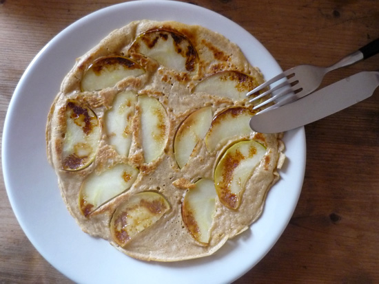 {sugar in the morning} Apfelpfannkuchen schmecken nach meiner Kindheit. Die Lieblingsgerichte meines Vaters waren Pfannkuchen und Milchreis – da er der Mittagessenkoch war auch irgendwann meine. Heute mache ich mir immer dann welche wenn es sein muß, da gibt es dann auch kein Überlegen mehr. Pfanne raus, Teig gerührt, Äpfel geschält, Zimt und Zucker drauf – fertig. Sich wohlig und behütet fühlen wie ein kleines Mädchen mit Schleife im Haar und Schultasche auf dem Rücken, daß von der Schule nach Hause kommt.